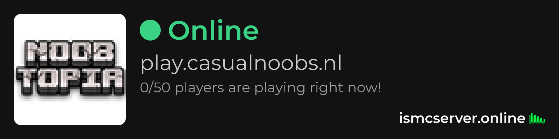 Dark Rounded image: https://ismcserver.online/play.casualnoobs.nl/widget?dark&rounded