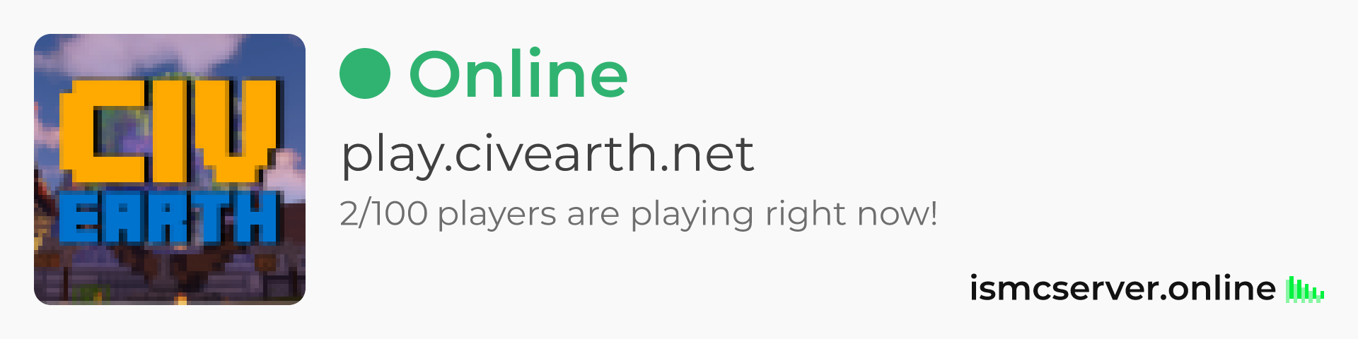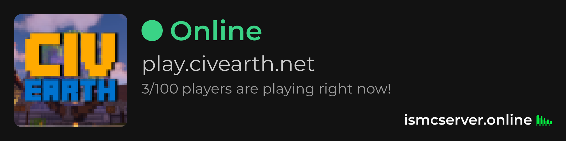 Dark Rounded image: https://ismcserver.online/play.civearth.net/widget?dark&rounded