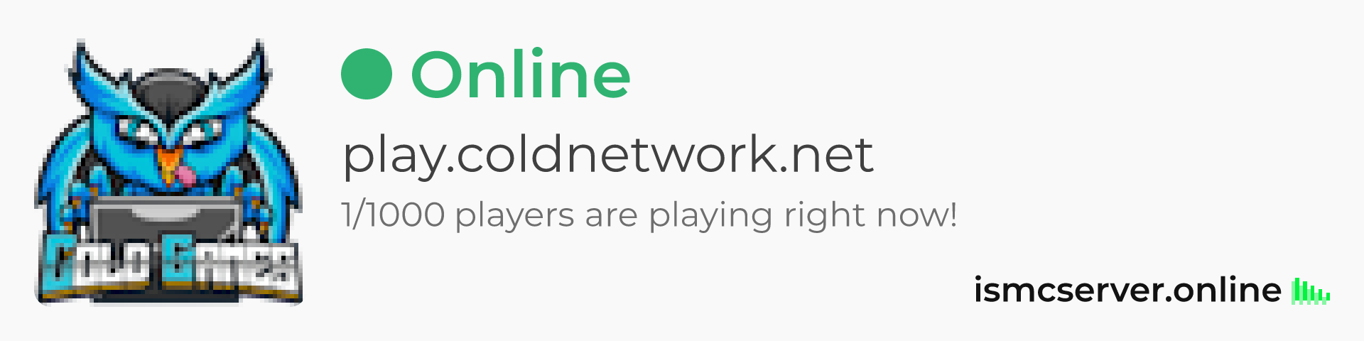 Dark theme: https://ismcserver.online/play.coldnetwork.net/widget?dark=true