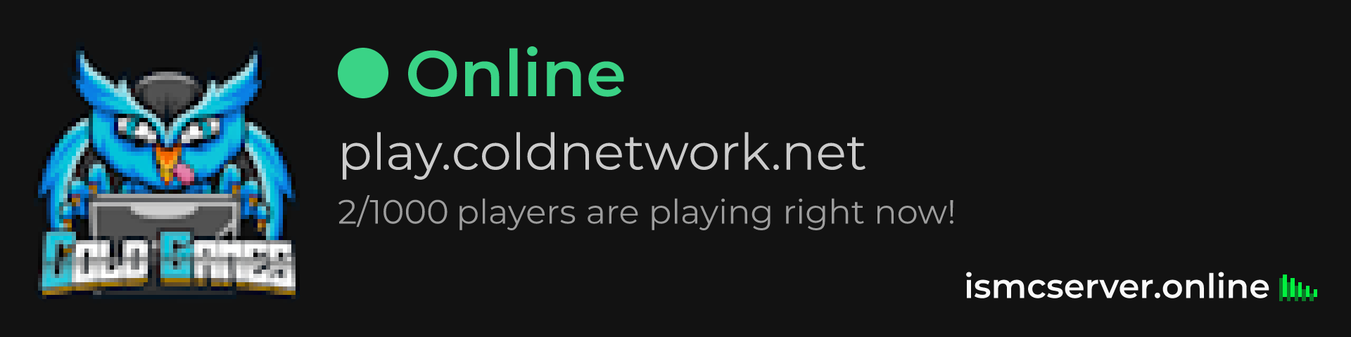 Dark Rounded image: https://ismcserver.online/play.coldnetwork.net/widget?dark&rounded