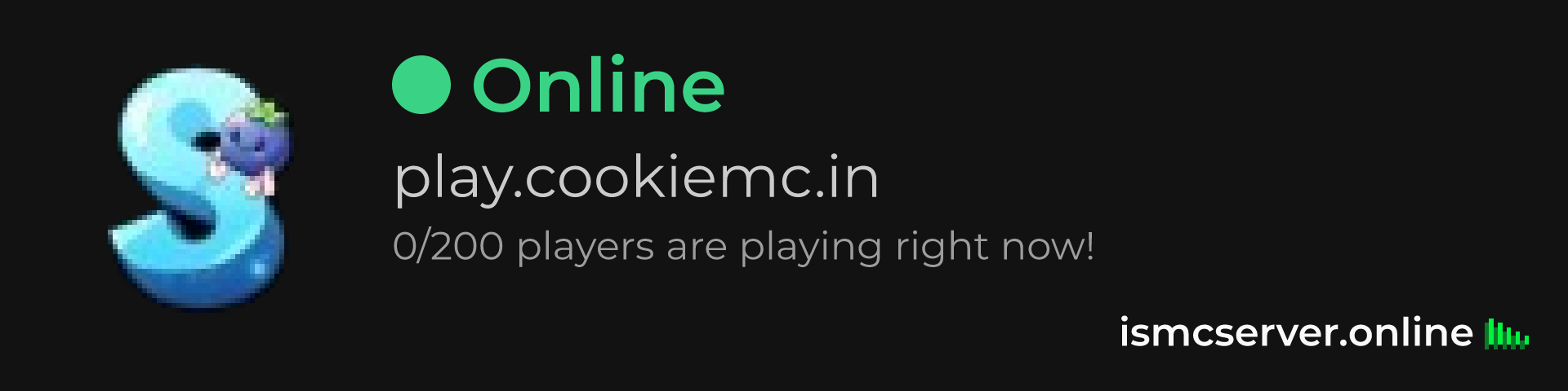 Dark Rounded image: https://ismcserver.online/play.cookiemc.in/widget?dark&rounded