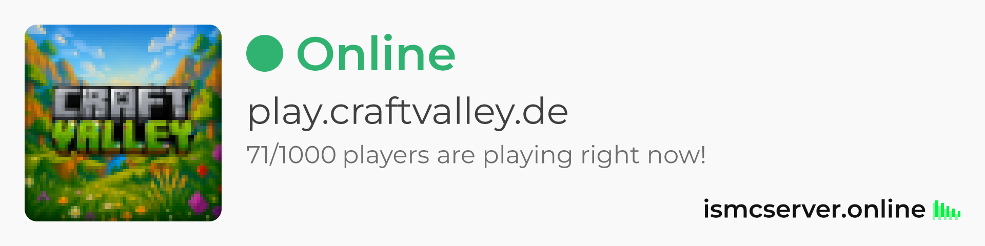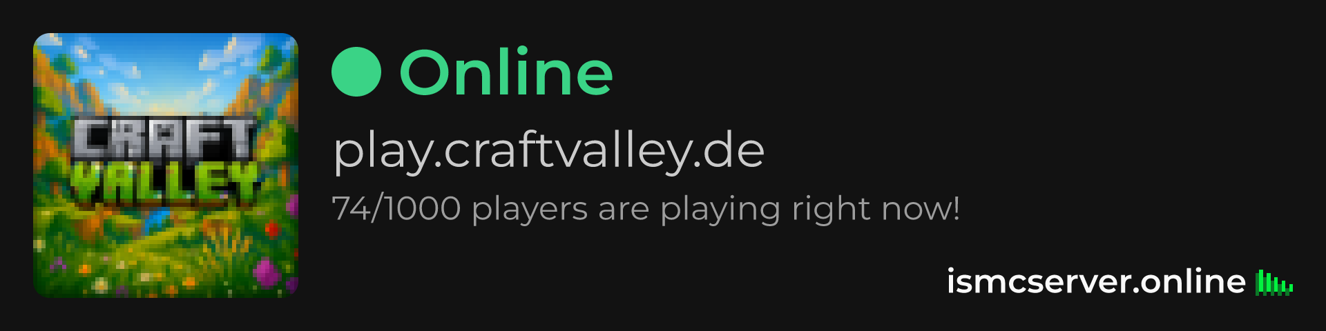 Dark Rounded image: https://ismcserver.online/play.craftvalley.de/widget?dark&rounded