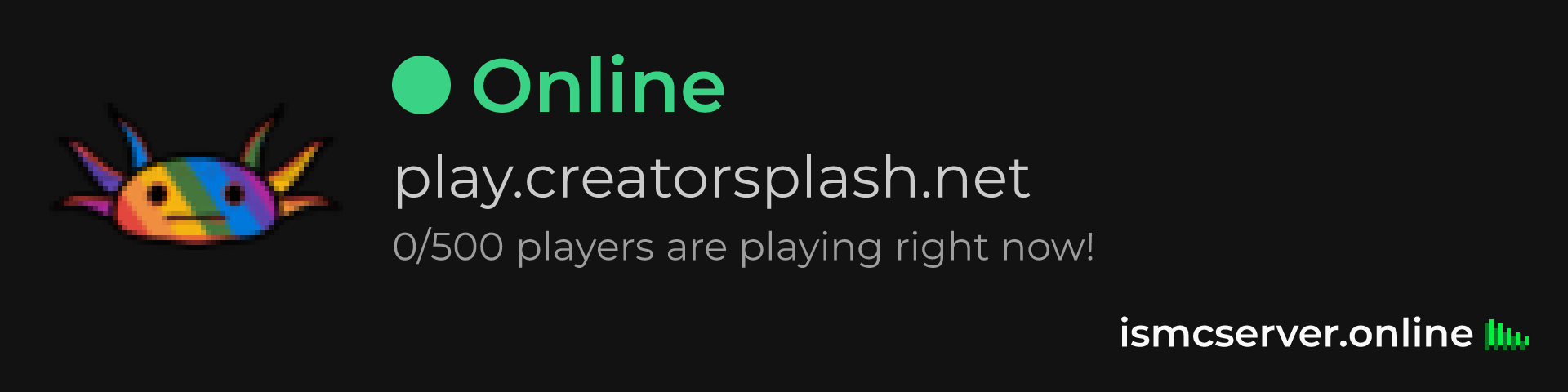 Dark theme: https://ismcserver.online/play.creatorsplash.net/widget?dark=true