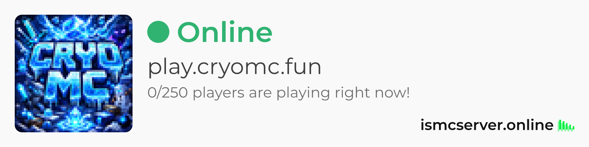 Dark theme: https://ismcserver.online/play.cryomc.fun/widget?dark=true