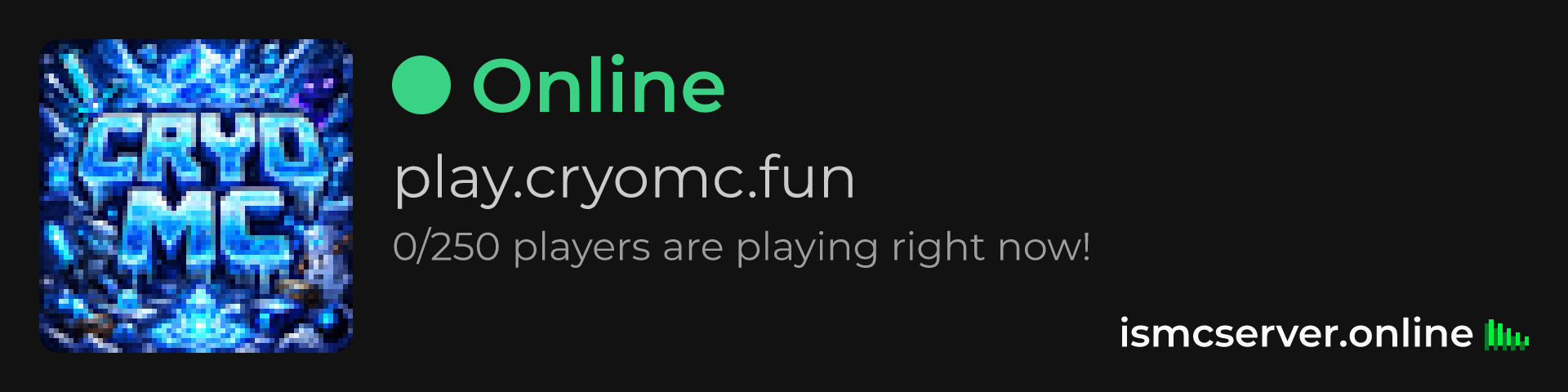 Dark Rounded image: https://ismcserver.online/play.cryomc.fun/widget?dark&rounded
