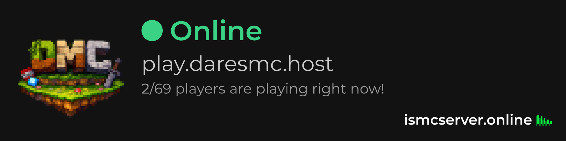 Dark Rounded image: https://ismcserver.online/play.daresmc.host/widget?dark&rounded