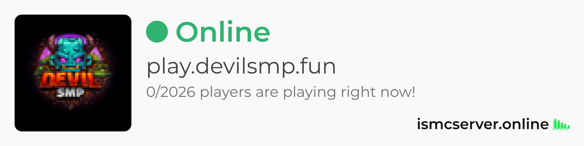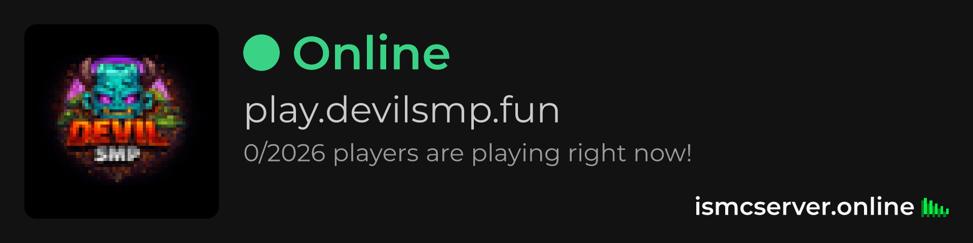 Dark theme: https://ismcserver.online/play.devilsmp.fun/widget?dark=true