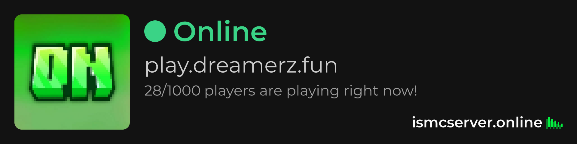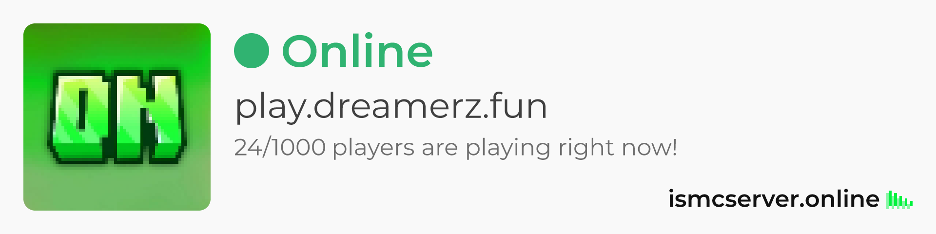 Dark theme: https://ismcserver.online/play.dreamerz.fun/widget?dark=true