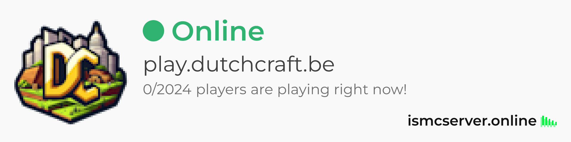 Dark Rounded image: https://ismcserver.online/play.dutchcraft.be/widget?dark&rounded