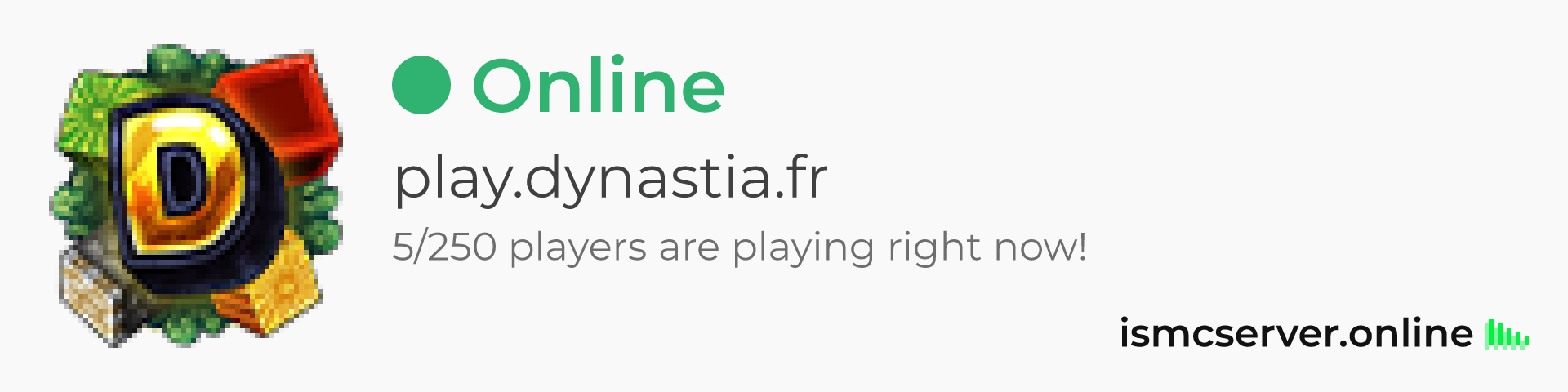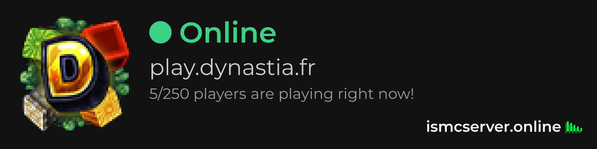 Dark theme: https://ismcserver.online/play.dynastia.fr/widget?dark=true