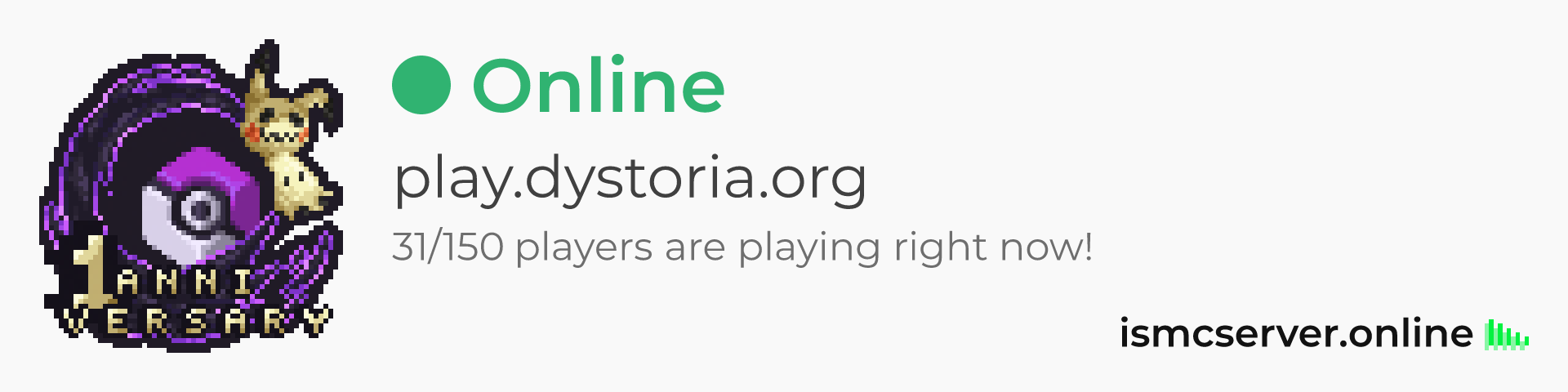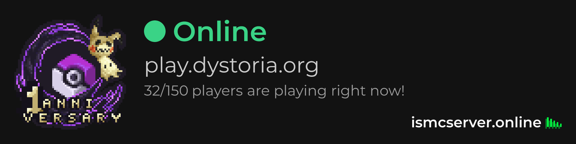 Dark Rounded image: https://ismcserver.online/play.dystoria.org/widget?dark&rounded