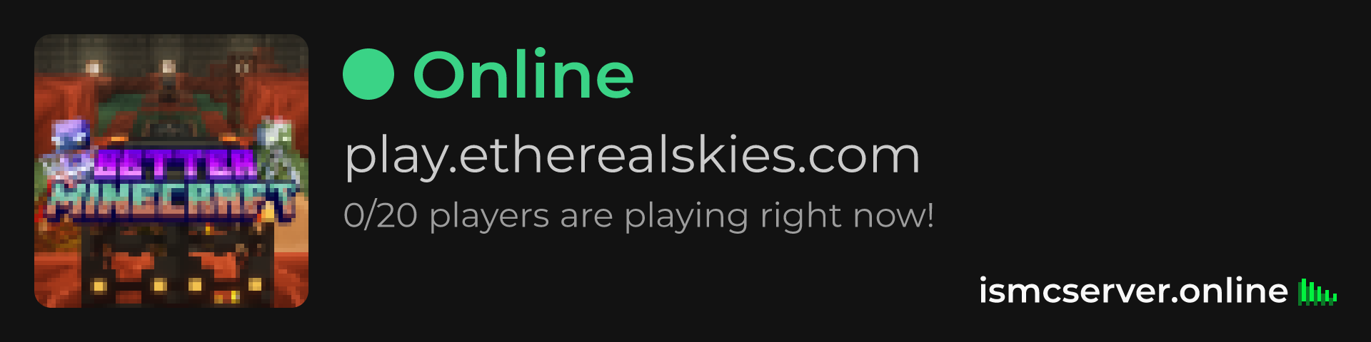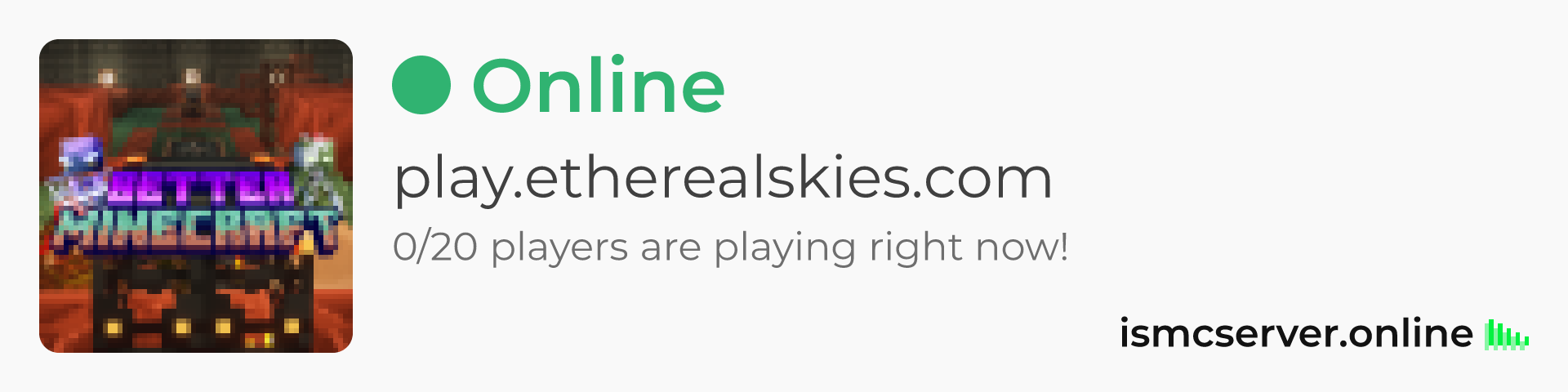 Dark theme: https://ismcserver.online/play.etherealskies.com/widget?dark=true