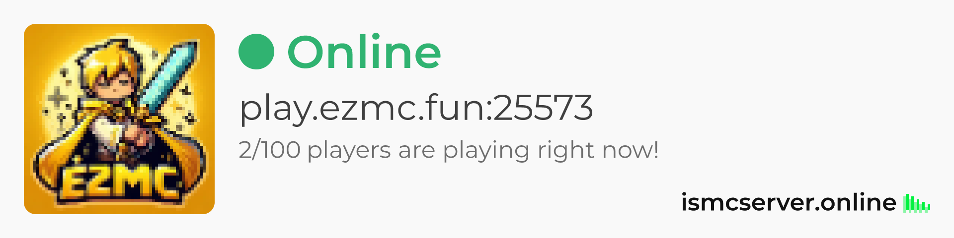 Dark theme: https://ismcserver.online/play.ezmc.fun:25573/widget?dark=true