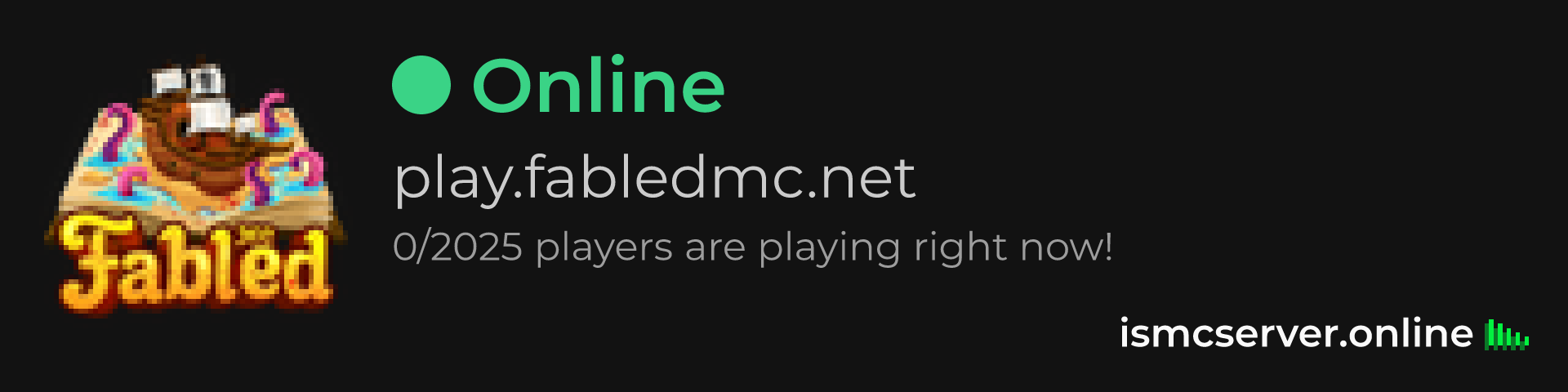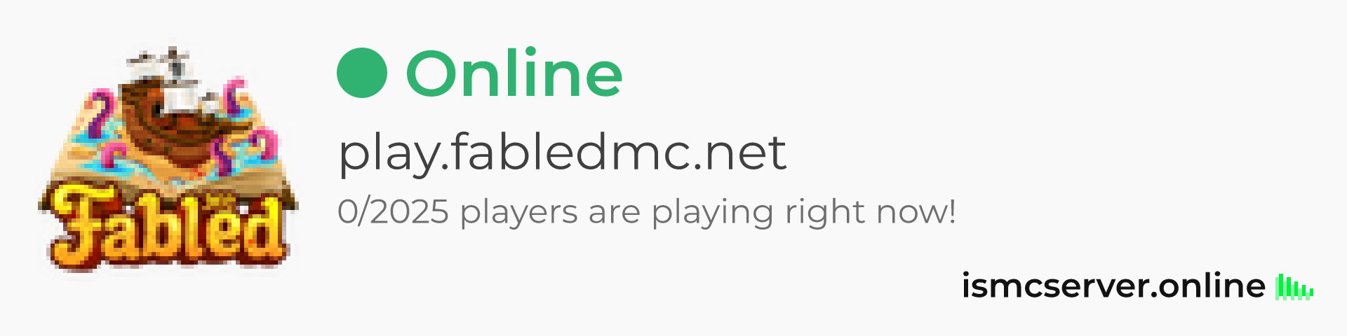 Dark theme: https://ismcserver.online/play.fabledmc.net/widget?dark=true