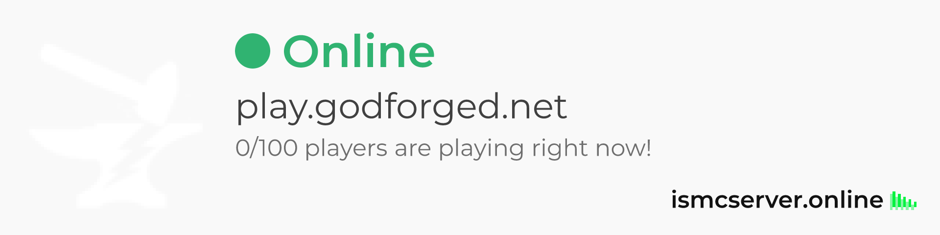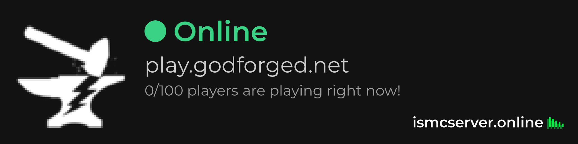 Dark Rounded image: https://ismcserver.online/play.godforged.net/widget?dark&rounded