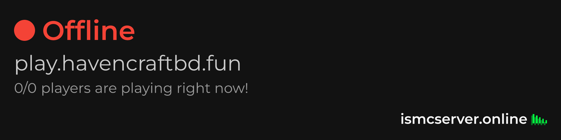 Dark Rounded image: https://ismcserver.online/play.havencraftbd.fun/widget?dark&rounded