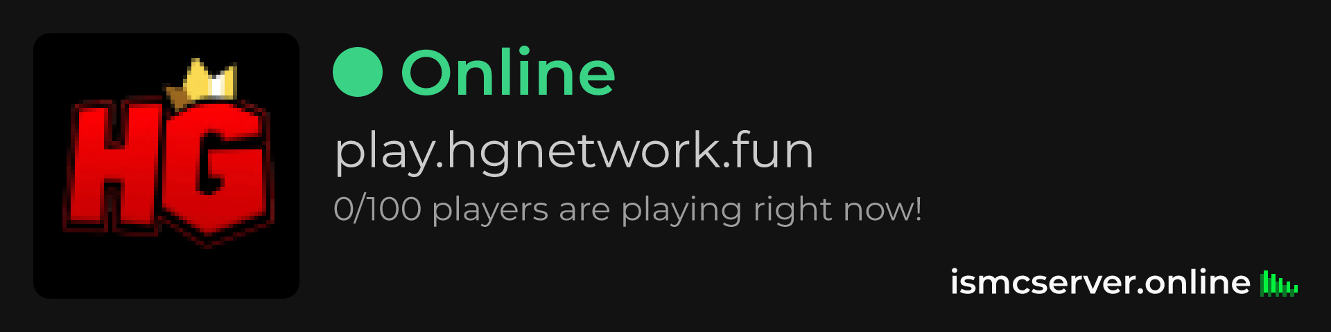 Dark Rounded image: https://ismcserver.online/play.hgnetwork.fun/widget?dark&rounded