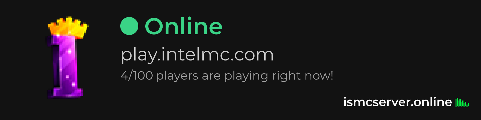 Dark Rounded image: https://ismcserver.online/play.intelmc.com/widget?dark&rounded