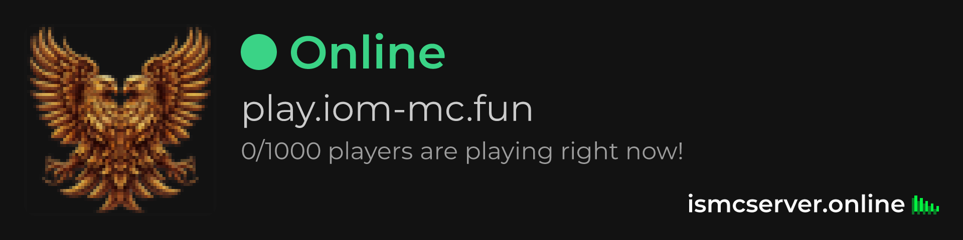 Dark Rounded image: https://ismcserver.online/play.iom-mc.fun/widget?dark&rounded