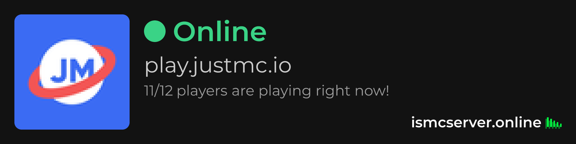Dark Rounded image: https://ismcserver.online/play.justmc.io/widget?dark&rounded