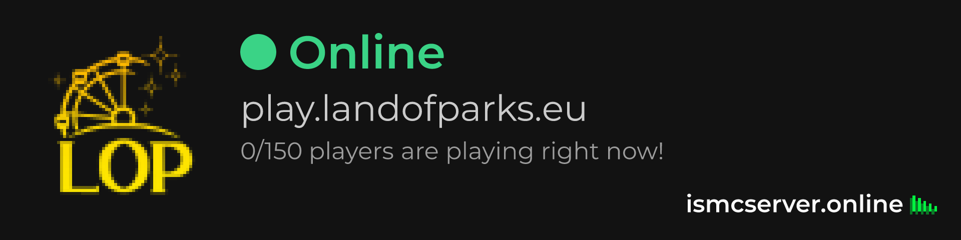 Dark Rounded image: https://ismcserver.online/play.landofparks.eu/widget?dark&rounded