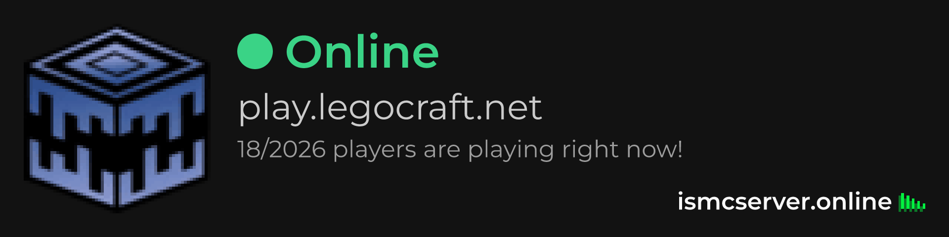 Dark Rounded image: https://ismcserver.online/play.legocraft.net/widget?dark&rounded