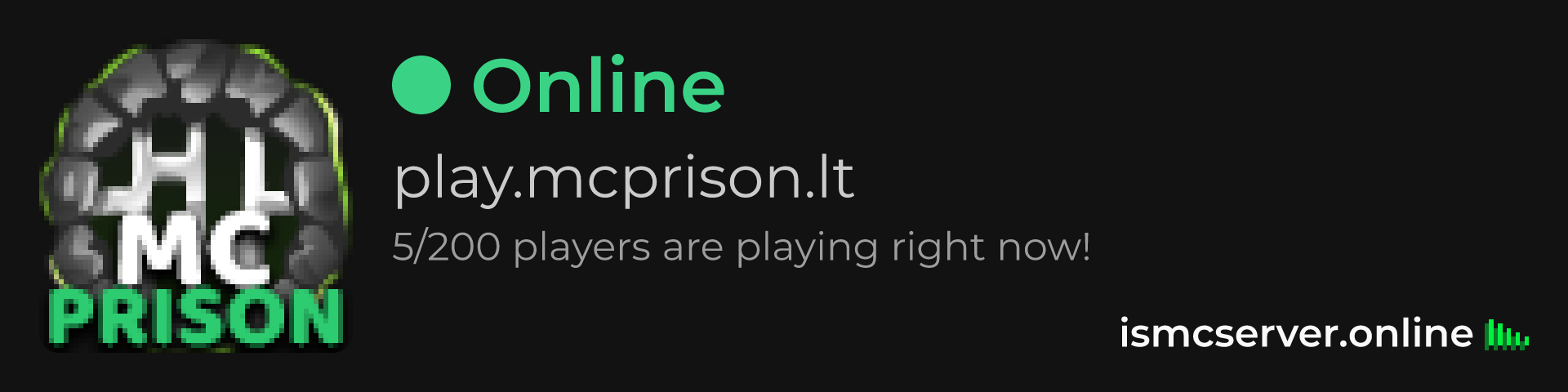 Dark Rounded image: https://ismcserver.online/play.mcprison.lt/widget?dark&rounded
