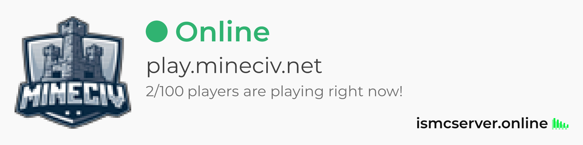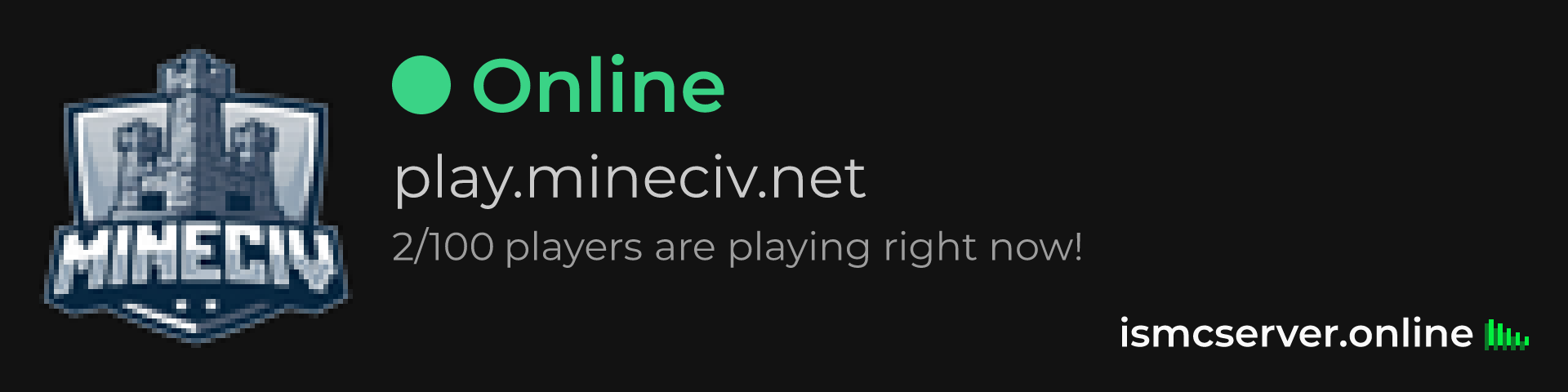 Dark Rounded image: https://ismcserver.online/play.mineciv.net/widget?dark&rounded
