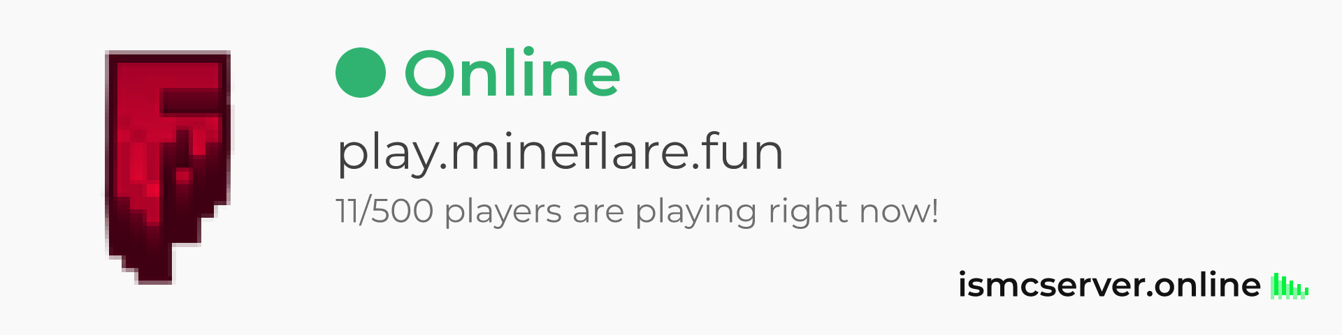 Dark theme: https://ismcserver.online/play.mineflare.fun/widget?dark=true