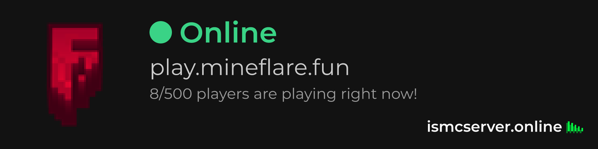 Dark Rounded image: https://ismcserver.online/play.mineflare.fun/widget?dark&rounded