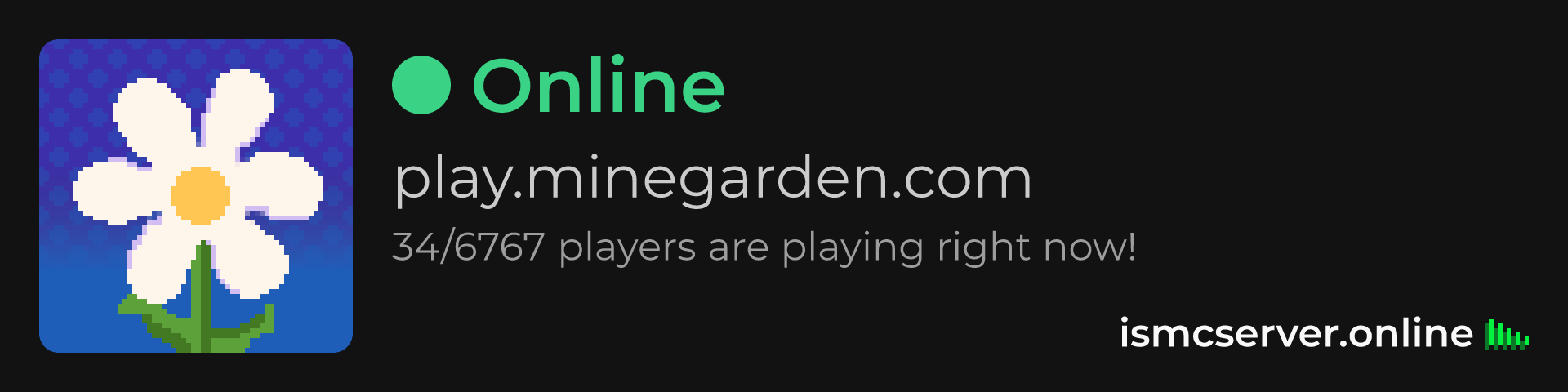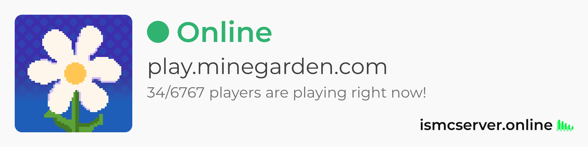 Dark theme: https://ismcserver.online/play.minegarden.com/widget?dark=true