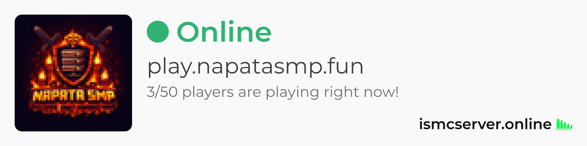 Dark theme: https://ismcserver.online/play.napatasmp.fun/widget?dark=true
