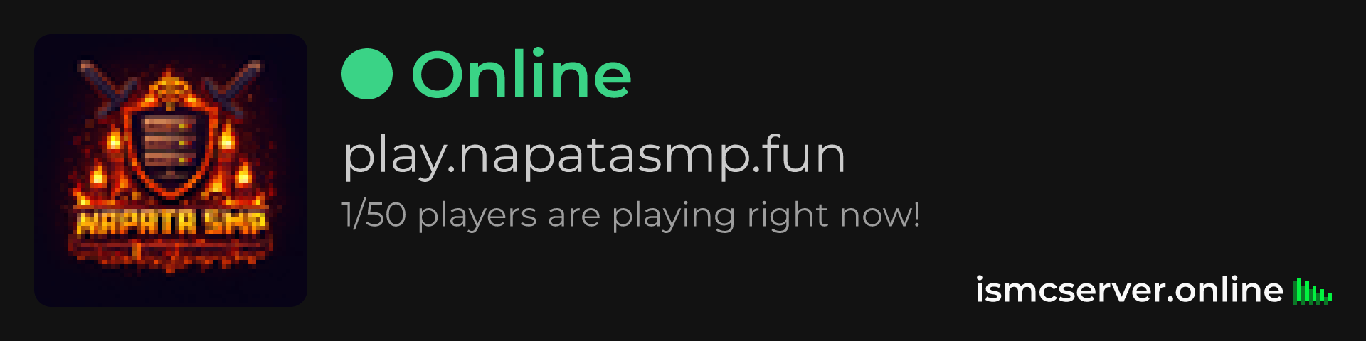 Dark Rounded image: https://ismcserver.online/play.napatasmp.fun/widget?dark&rounded