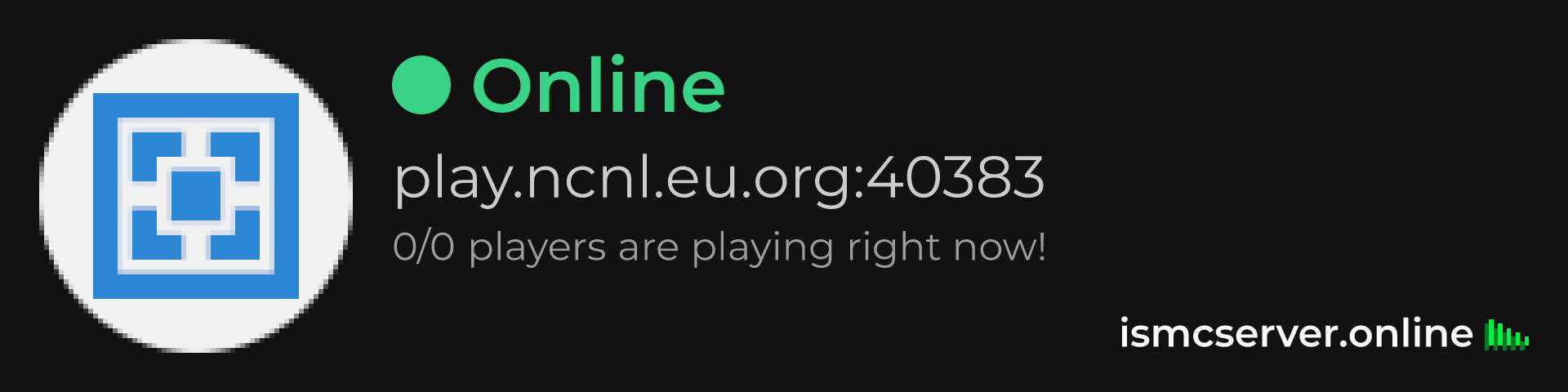 Dark Rounded image: https://ismcserver.online/play.ncnl.eu.org:40383/widget?dark&rounded