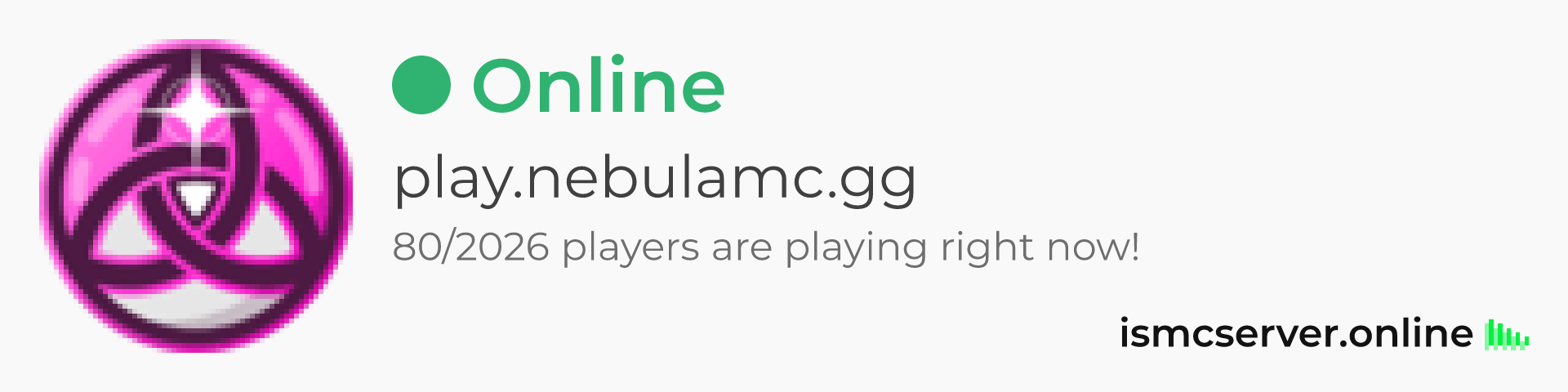 Dark theme: https://ismcserver.online/play.nebulamc.gg/widget?dark=true