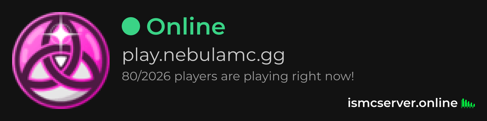 Dark Rounded image: https://ismcserver.online/play.nebulamc.gg/widget?dark&rounded