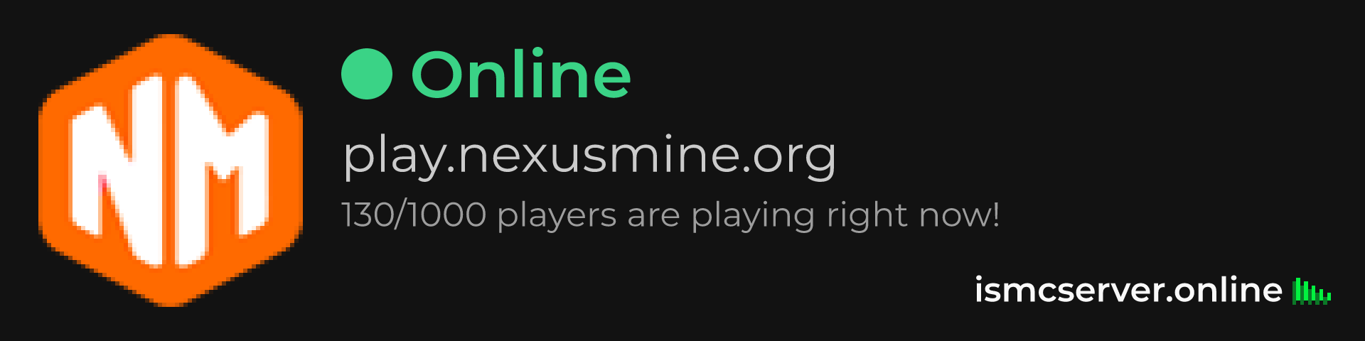 Dark Rounded image: https://ismcserver.online/play.nexusmine.org/widget?dark&rounded