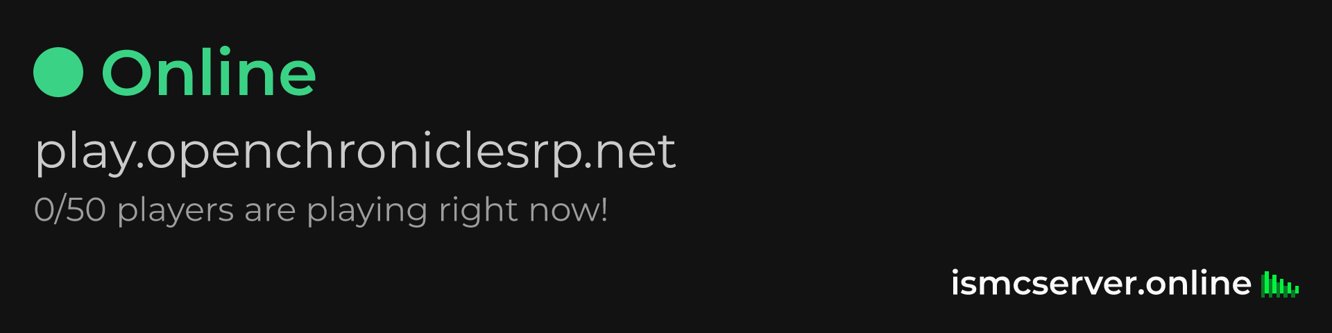 Widgets are accessible for everyone, without needing any token. Simply add /widget at the end of server's url. Like this: https://ismcserver.online/play.openchroniclesrp.net/widget.