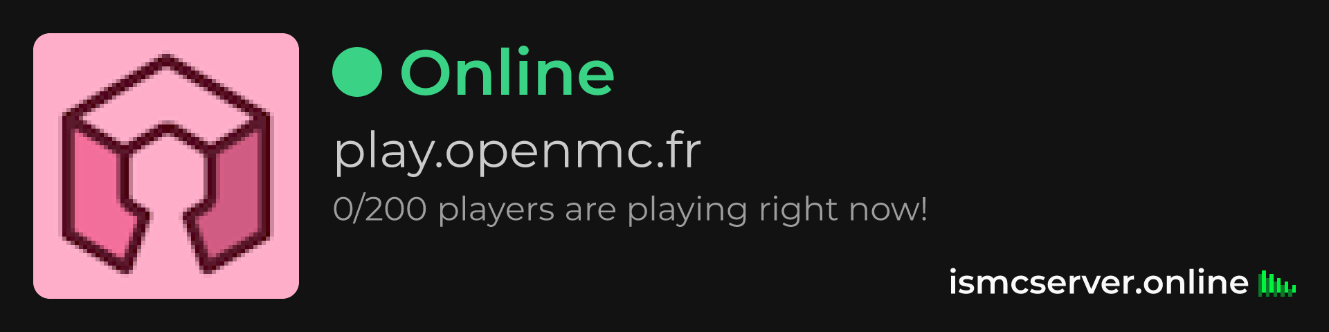 Dark Rounded image: https://ismcserver.online/play.openmc.fr/widget?dark&rounded
