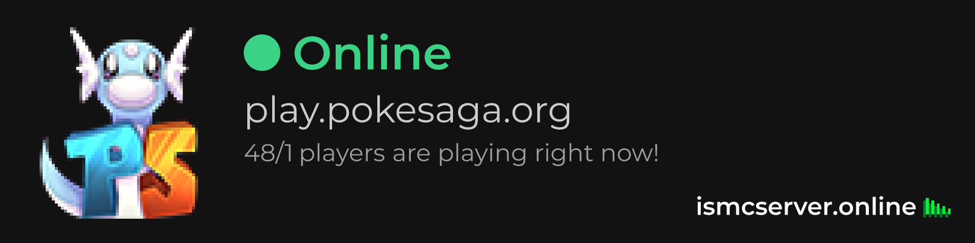 Dark Rounded image: https://ismcserver.online/play.pokesaga.org/widget?dark&rounded