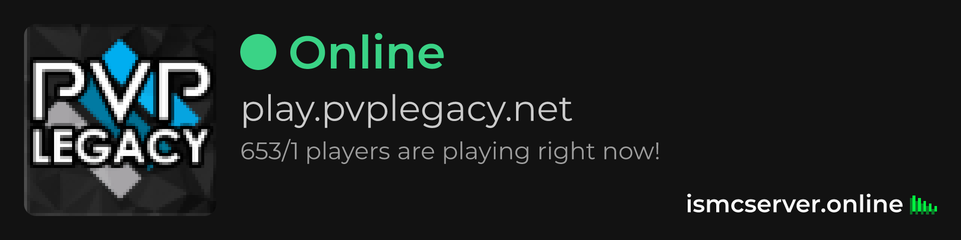 Dark Rounded image: https://ismcserver.online/play.pvplegacy.net/widget?dark&rounded