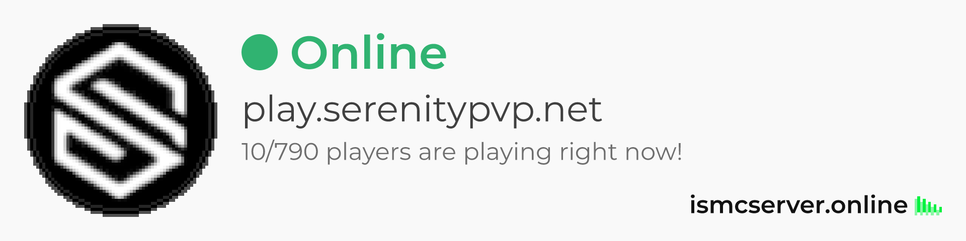 Dark theme: https://ismcserver.online/play.serenitypvp.net/widget?dark=true