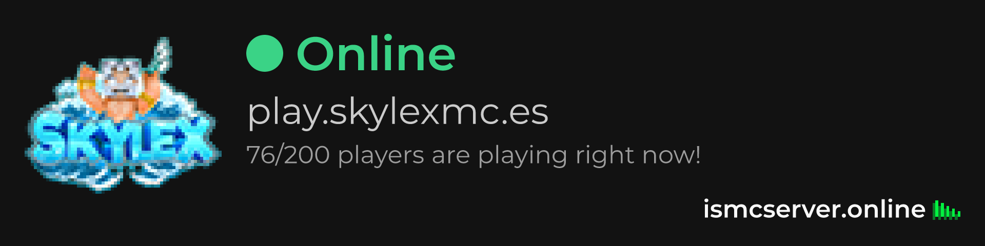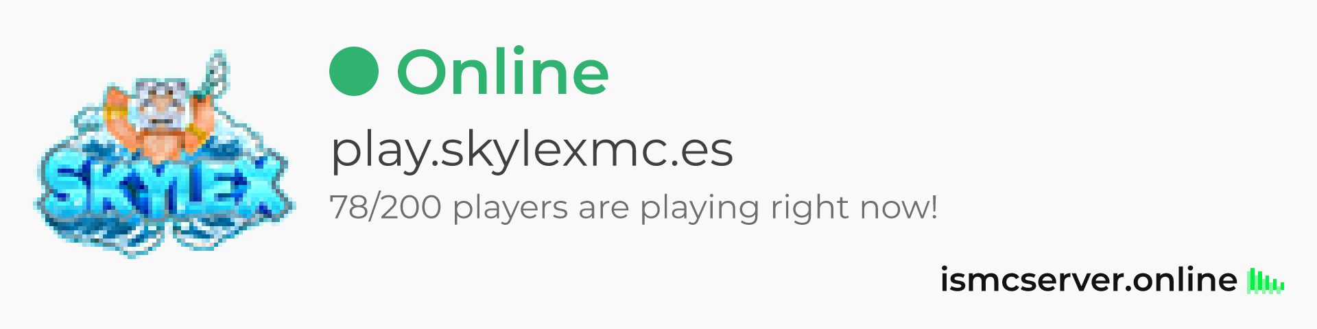 Dark theme: https://ismcserver.online/play.skylexmc.es/widget?dark=true