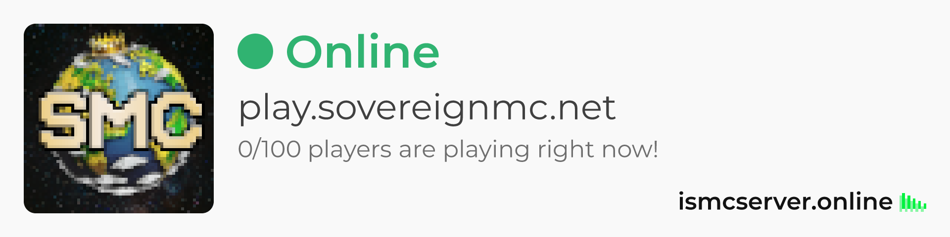 Dark theme: https://ismcserver.online/play.sovereignmc.net/widget?dark=true