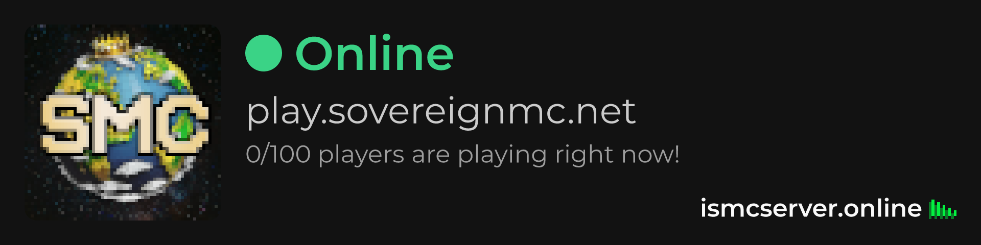 Dark Rounded image: https://ismcserver.online/play.sovereignmc.net/widget?dark&rounded