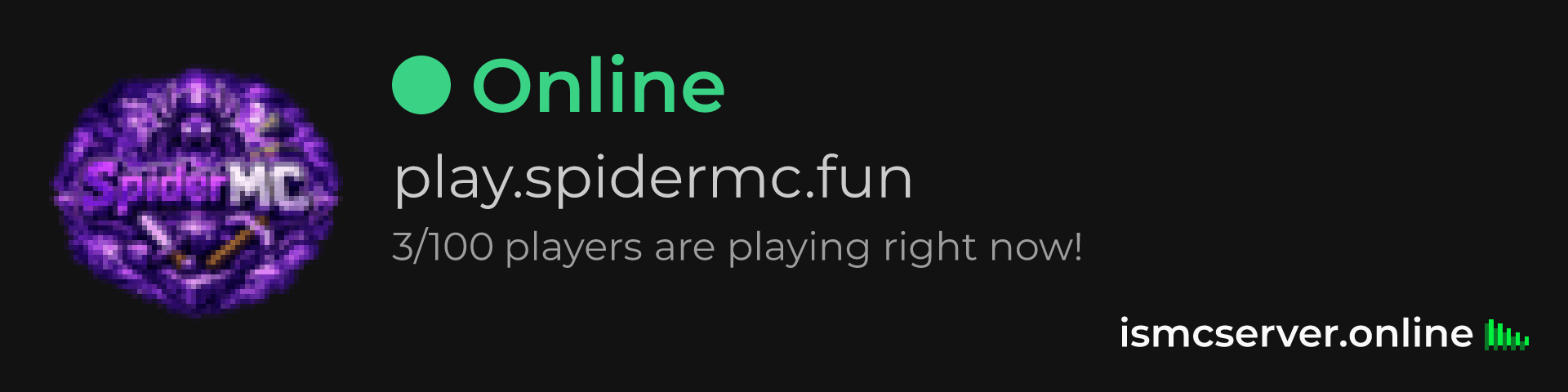 Dark Rounded image: https://ismcserver.online/play.spidermc.fun/widget?dark&rounded