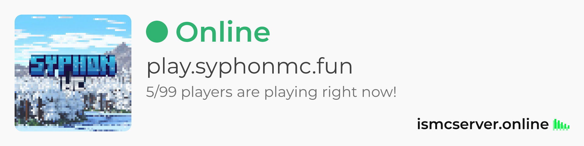 Dark theme: https://ismcserver.online/play.syphonmc.fun/widget?dark=true