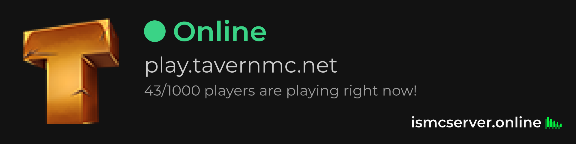 Dark Rounded image: https://ismcserver.online/play.tavernmc.net/widget?dark&rounded