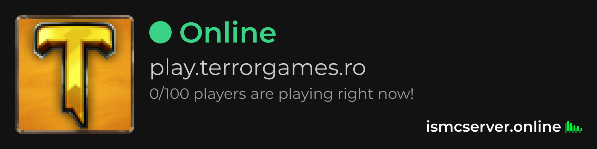 Dark Rounded image: https://ismcserver.online/play.terrorgames.ro/widget?dark&rounded