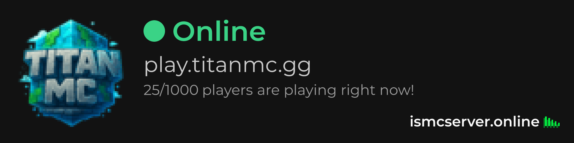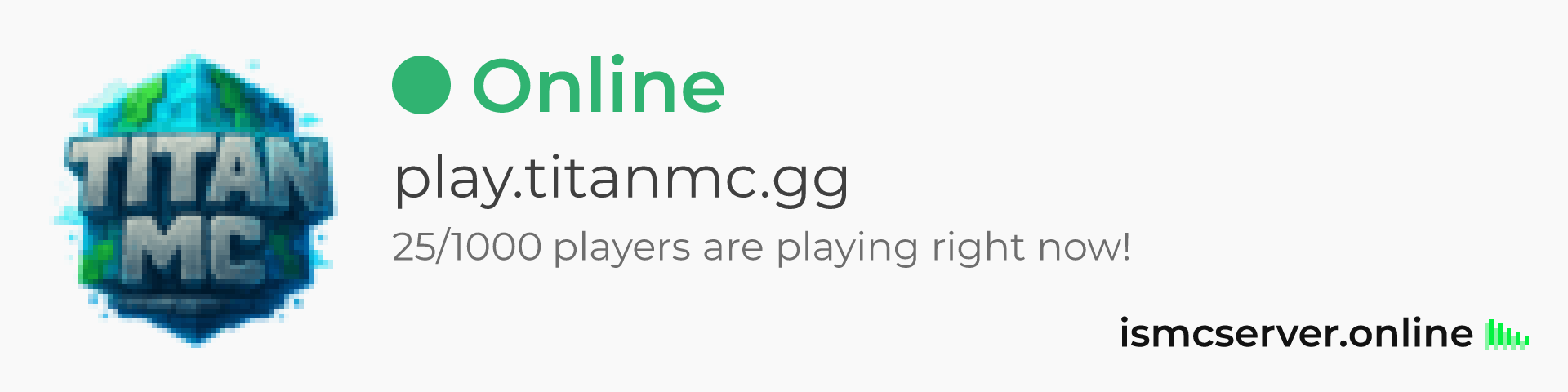 Dark theme: https://ismcserver.online/play.titanmc.gg/widget?dark=true